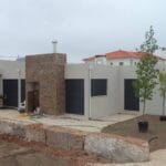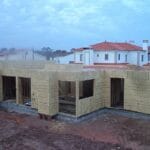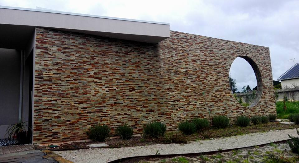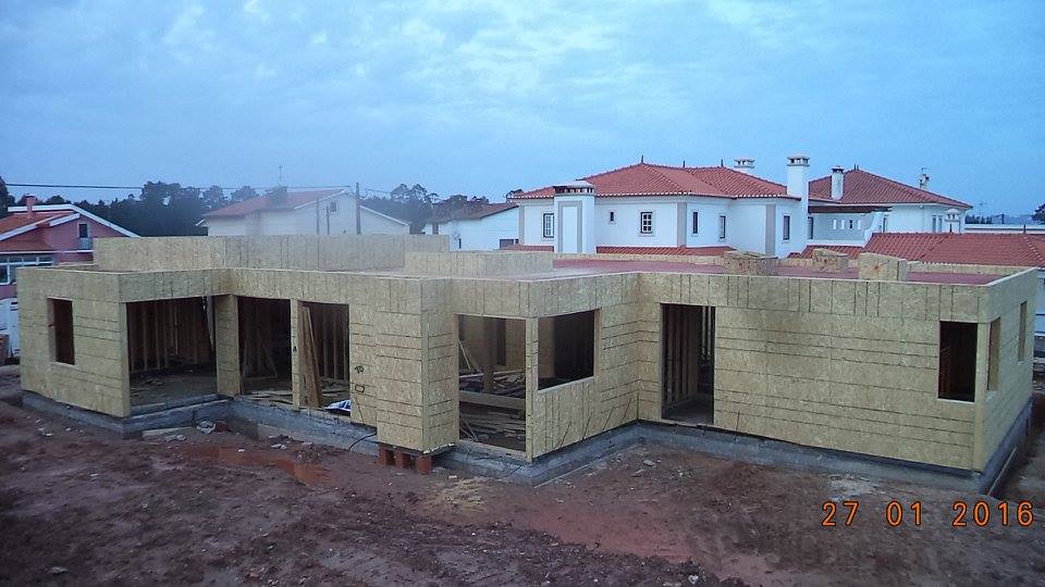 É uma casa wood frame. Moradia de arquitetura moderna com aspecto de alvenaria, mas com as vantagens de construção de madeira.