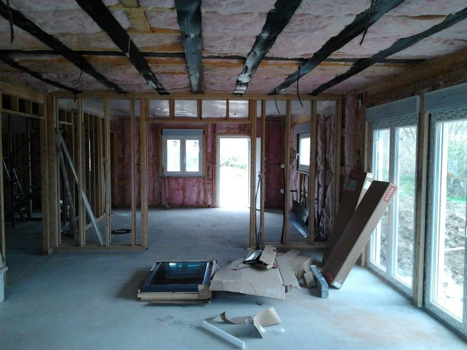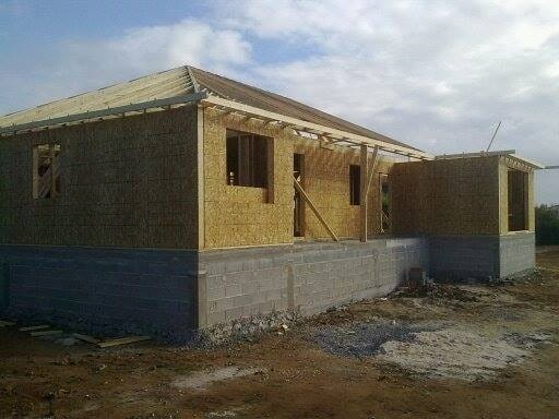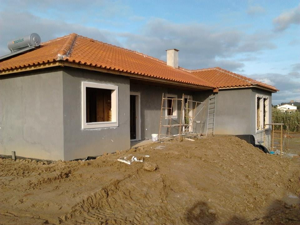 Casa durante a construção e o resultado final