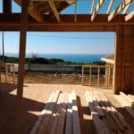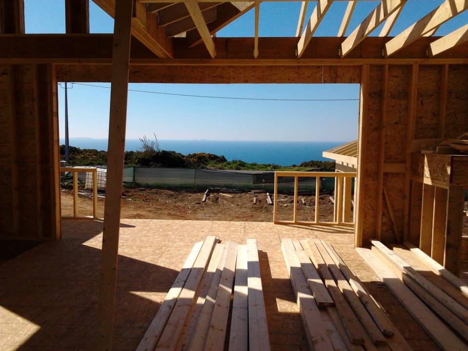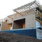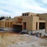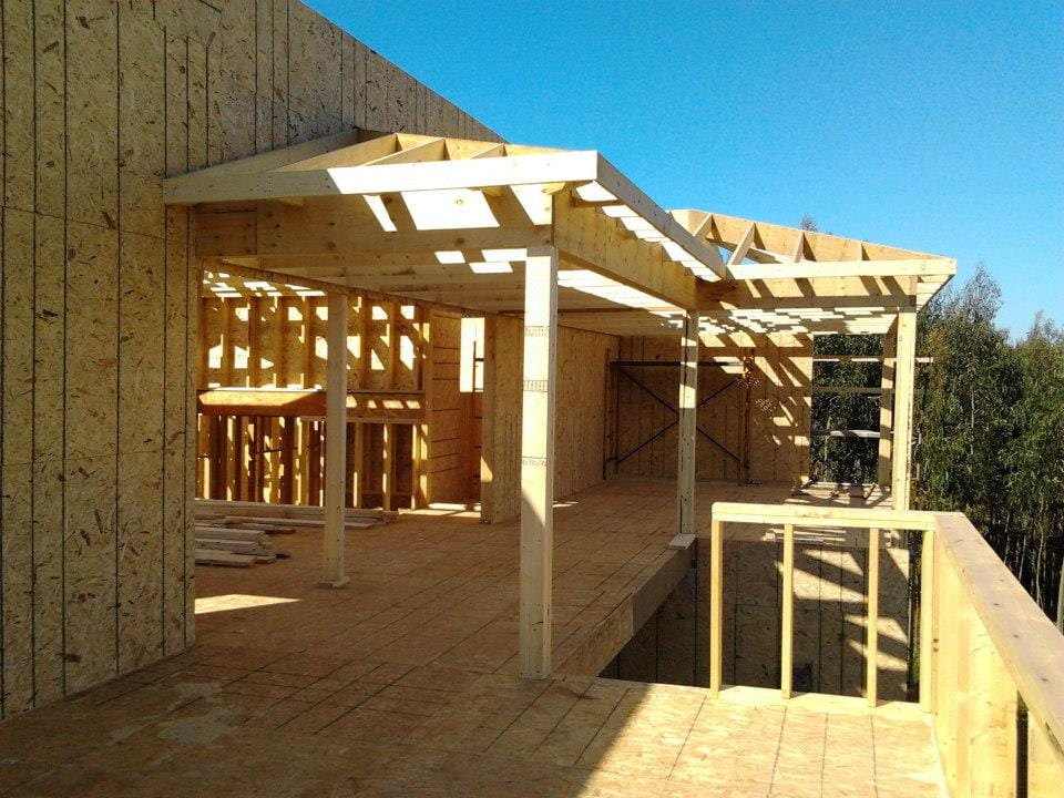 É uma casa wood frame. Moradia de arquitetura moderna com aspecto de alvenaria, mas com as vantagens de construção de madeira.