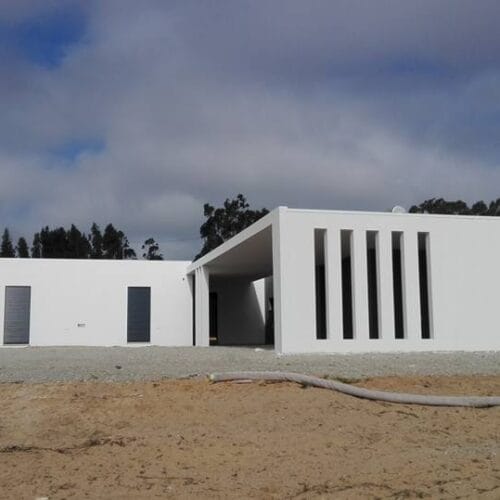 Construção wood frame, portanto uma casa de madeira, embora com aparência de alvenaria.